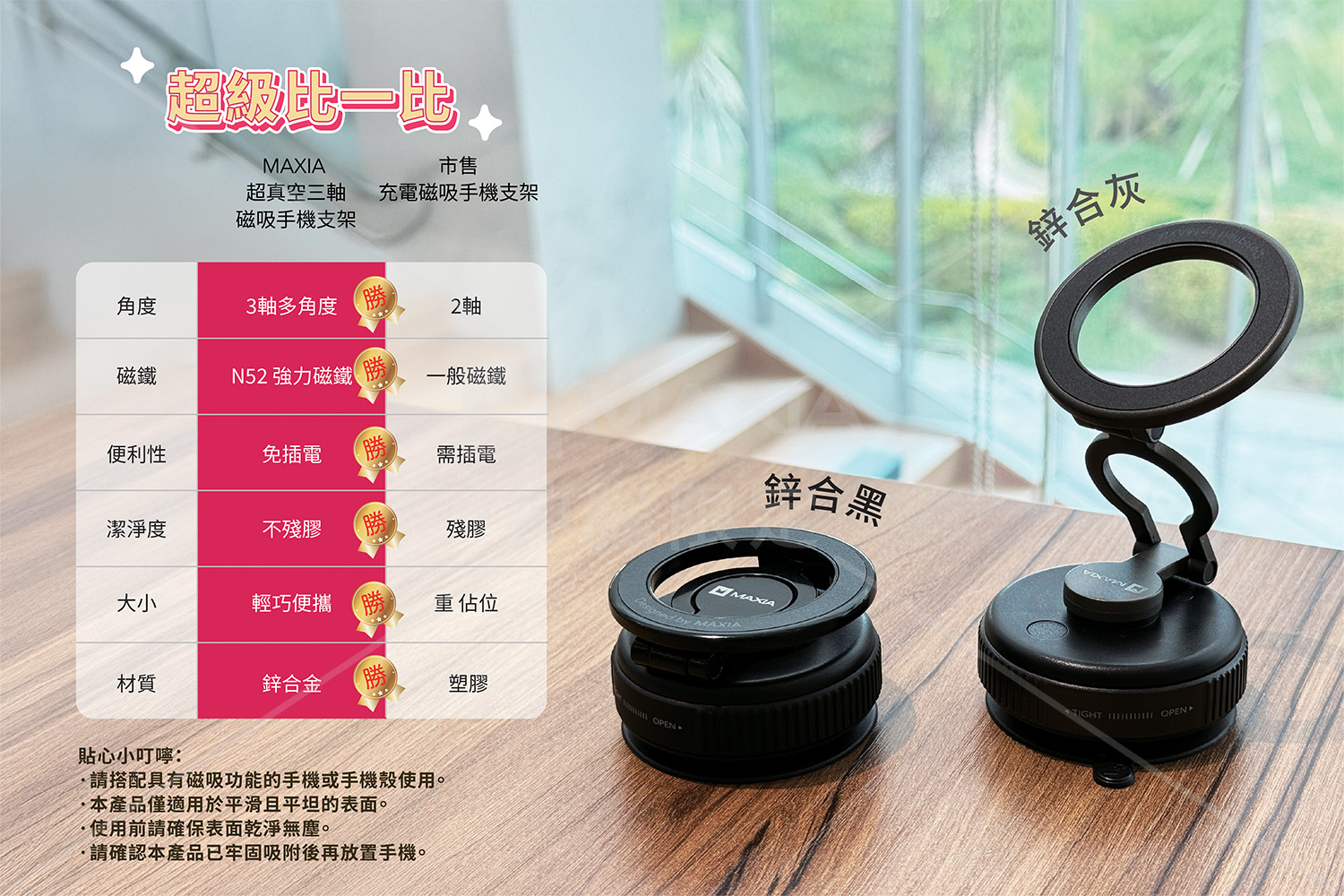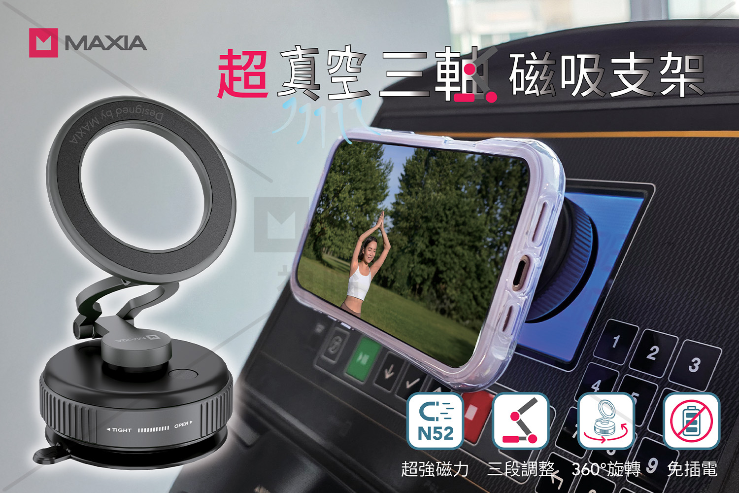 【MAXIA】超真空吸盤三軸磁吸手機支架-鋅合灰(360度旋轉 車用 磁吸支架 免充電 旅遊必備)
