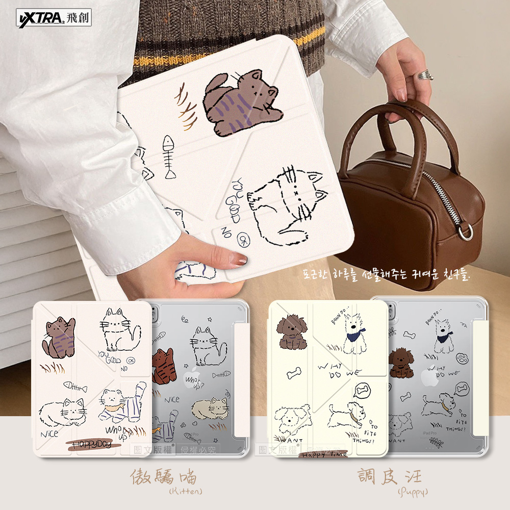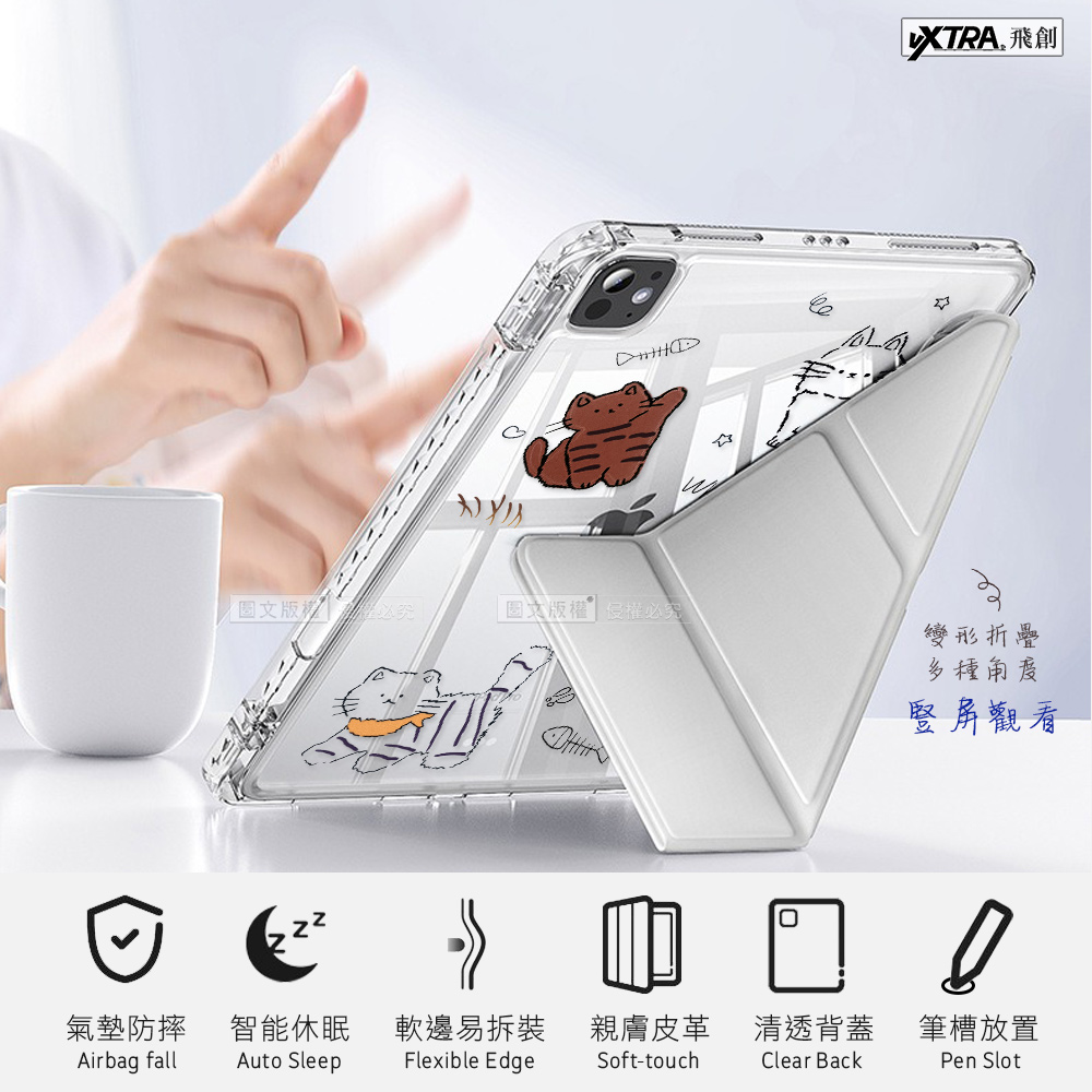 VXTRA 療癒萌寵 2025/2024 iPad Air7/Air6 11吋 共用 Y折晶透 防摔三角立架皮套 含筆槽(傲嬌喵)