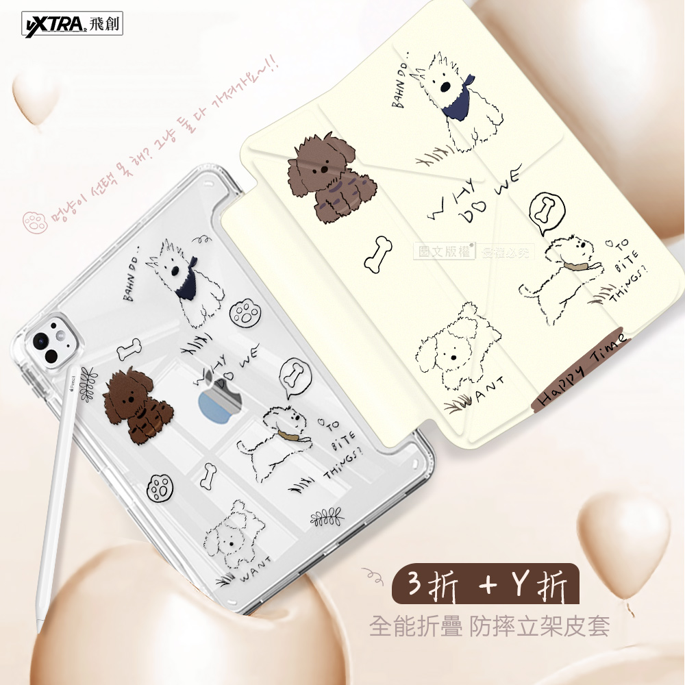 VXTRA 療癒萌寵 iPad Air (第5代) Air5/Air4 10.9吋 Y折晶透 防摔三角立架皮套 含筆槽(調皮汪)