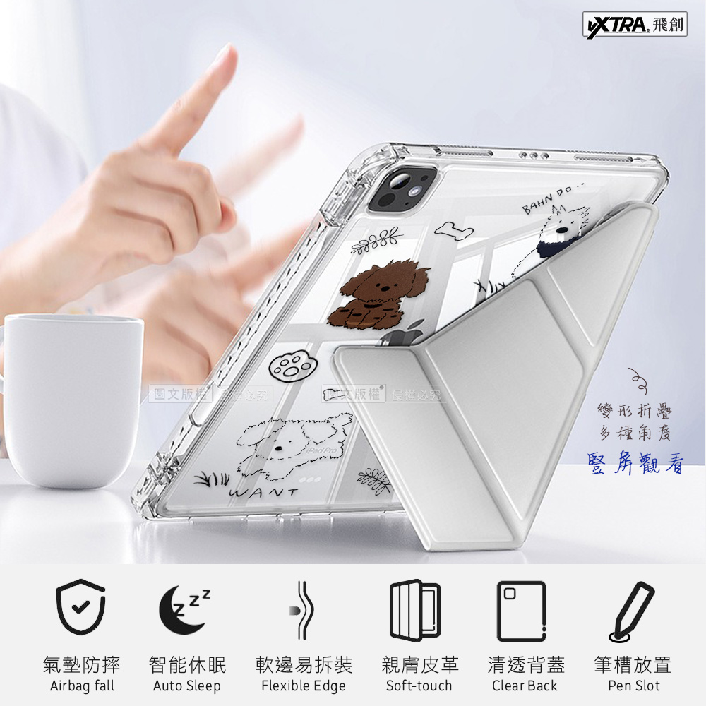 VXTRA 療癒萌寵 iPad Pro 11吋 第4代 2022/2021/2020版通用 Y折晶透 防摔立架皮套(調皮汪)+9H玻璃貼(合購價)