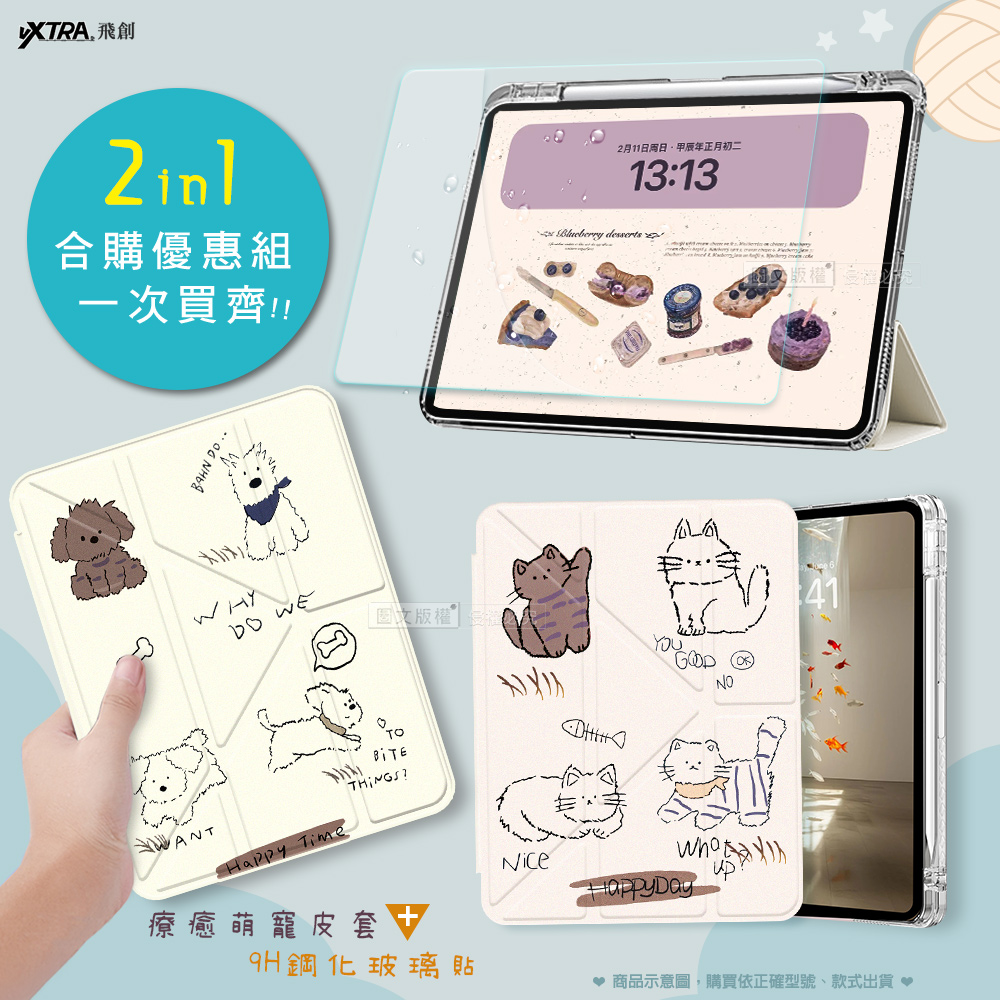 VXTRA 療癒萌寵 2025/2024 iPad Air7/Air6 11吋 共用 Y折晶透 防摔立架皮套(傲嬌喵)+9H玻璃貼(合購價)