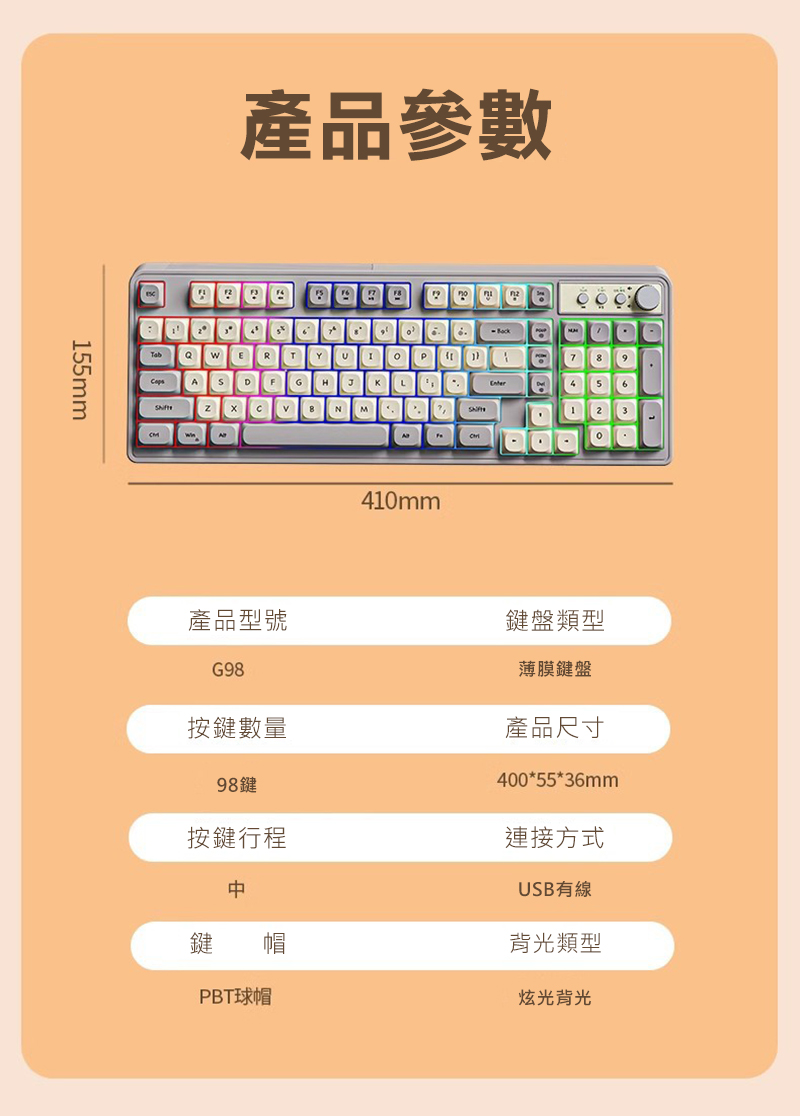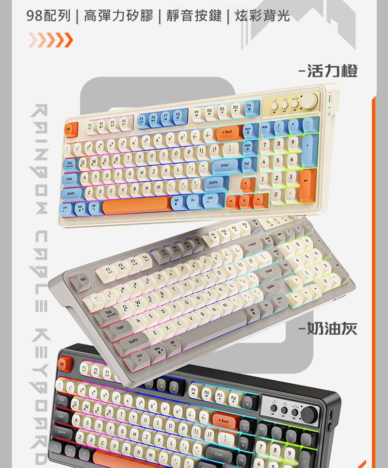 EWEADN 前行者 G98 炫光彩紅有線鍵盤(灰色)