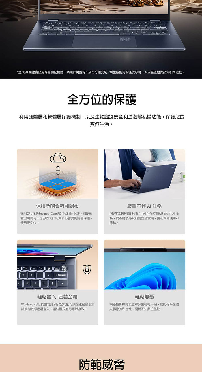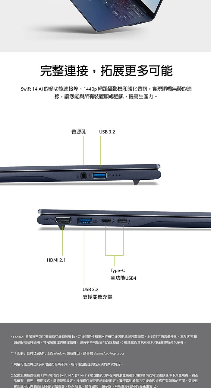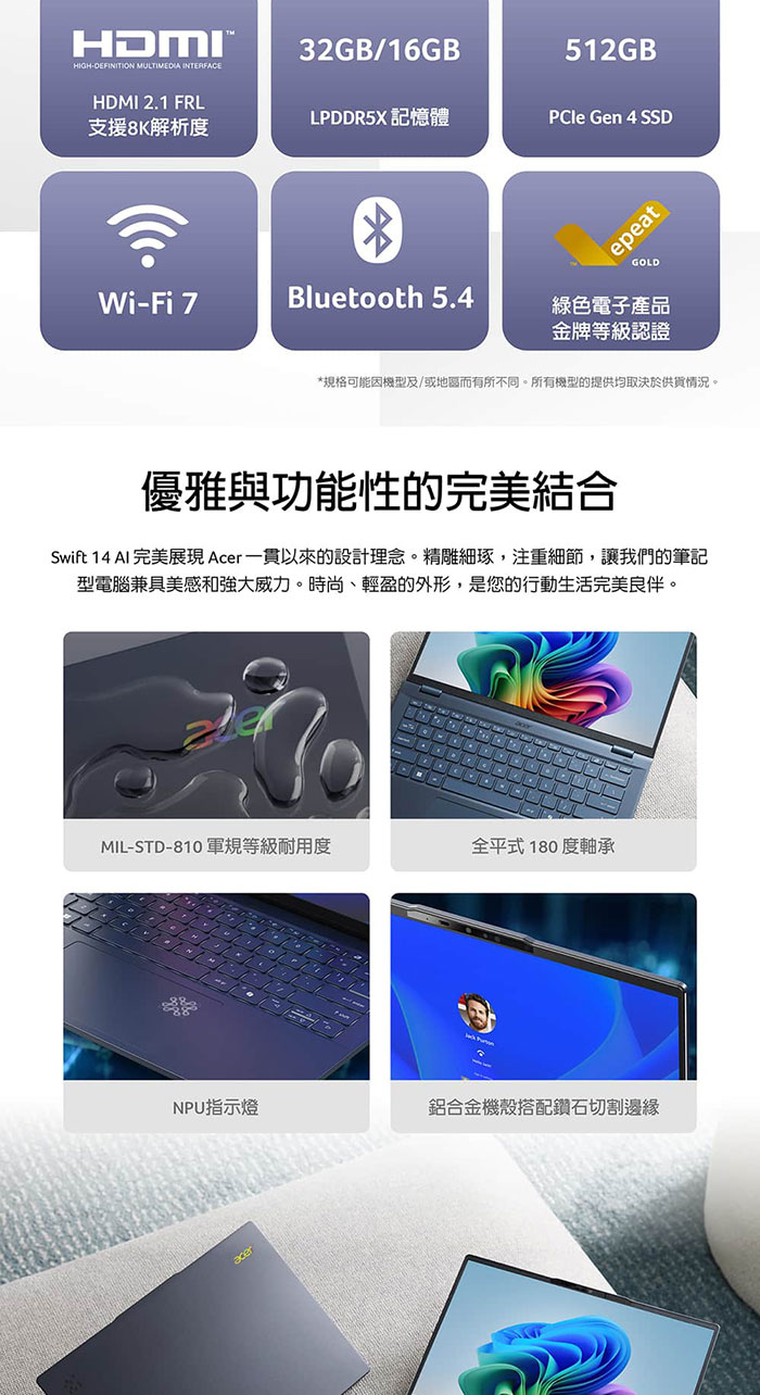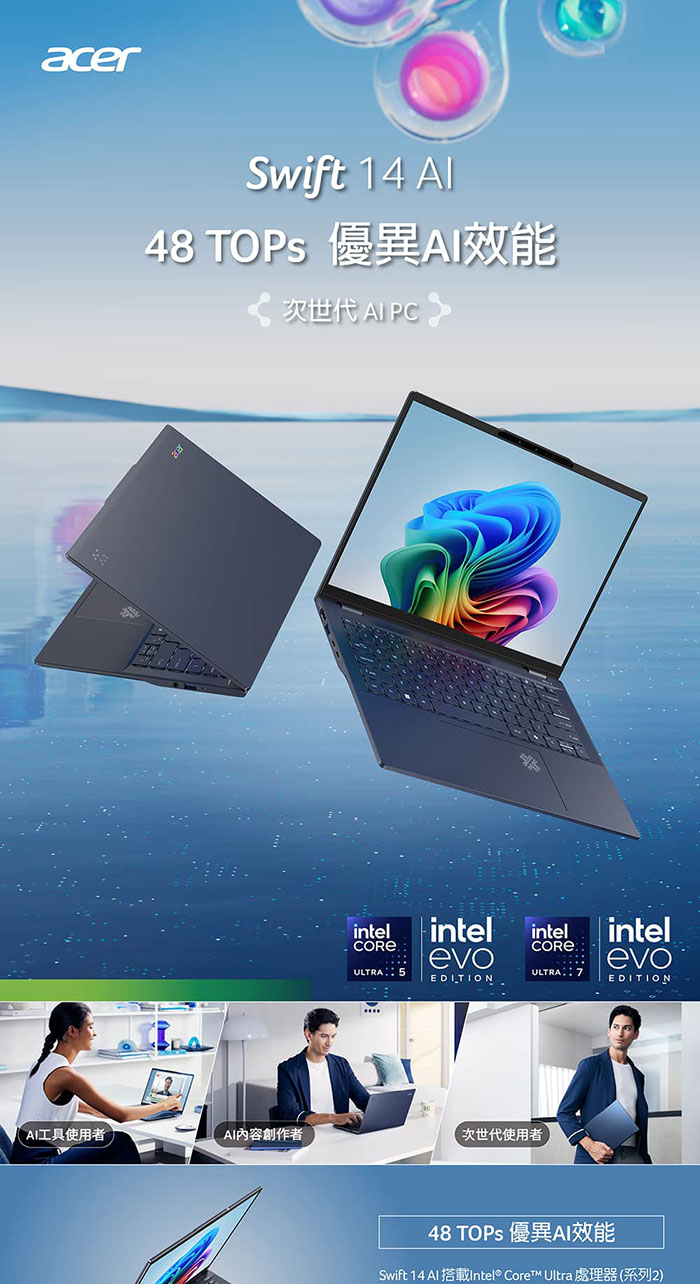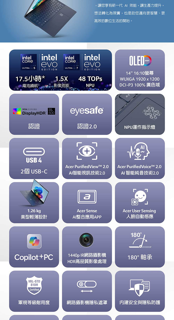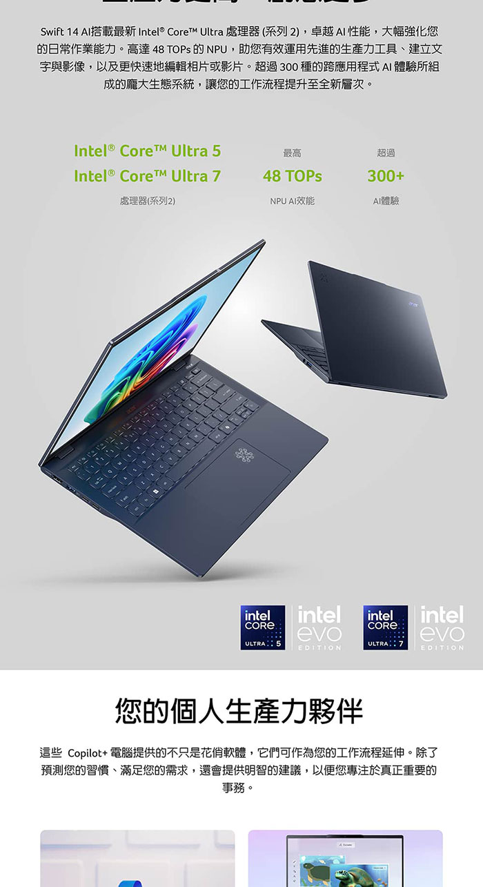 《Acer 宏碁》SF14-51-53QN (14吋OLED/Ultra 5 228V/32G/1TB PCIe SSD/Win11/特仕版)
