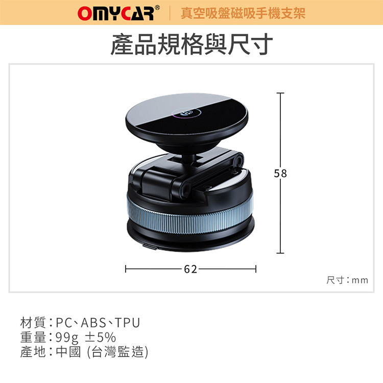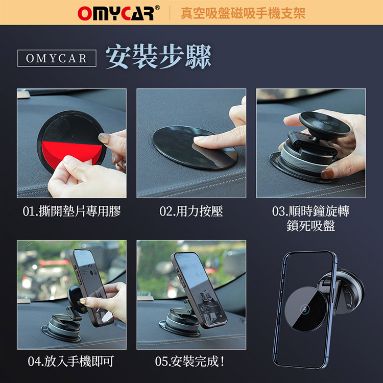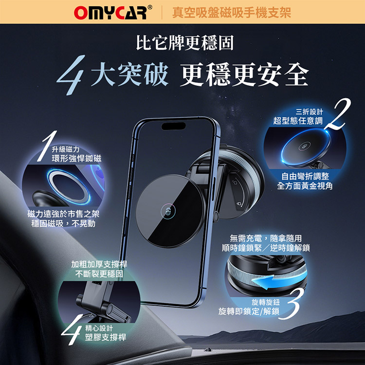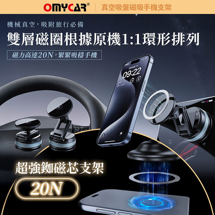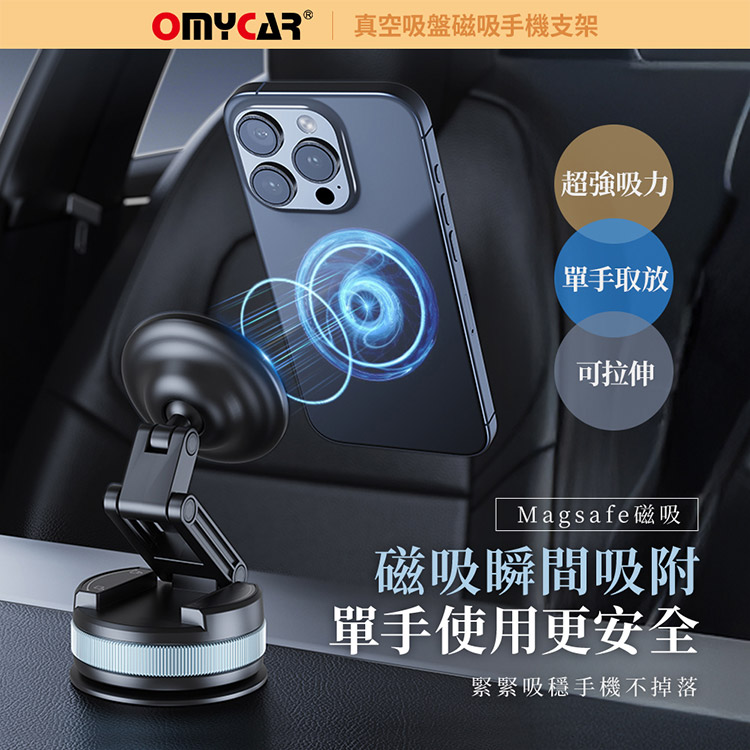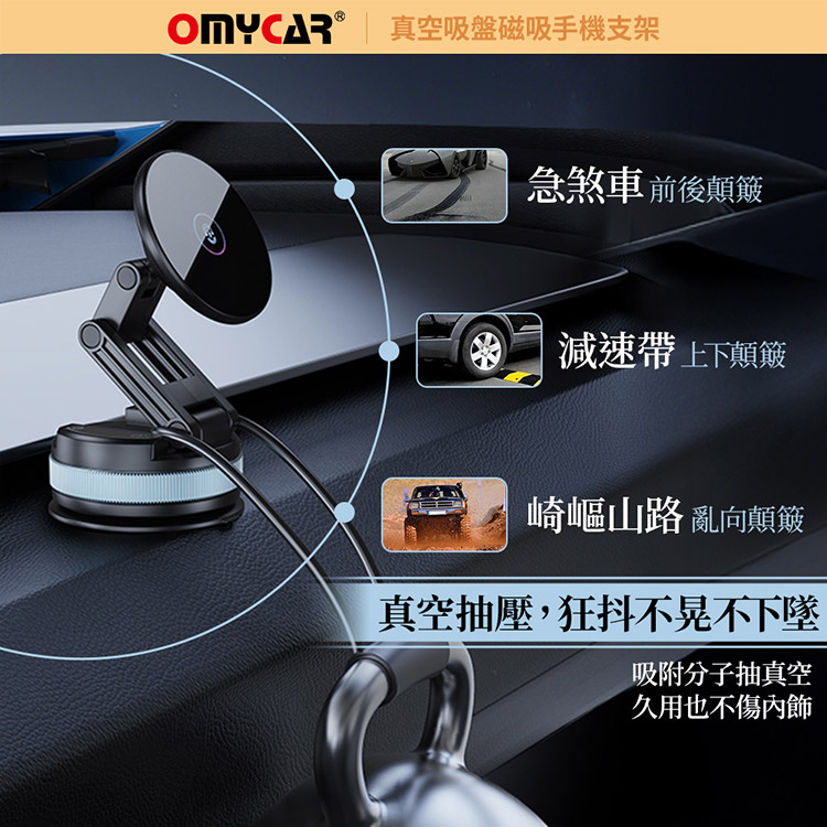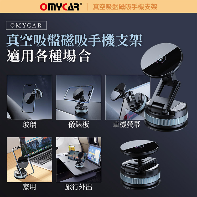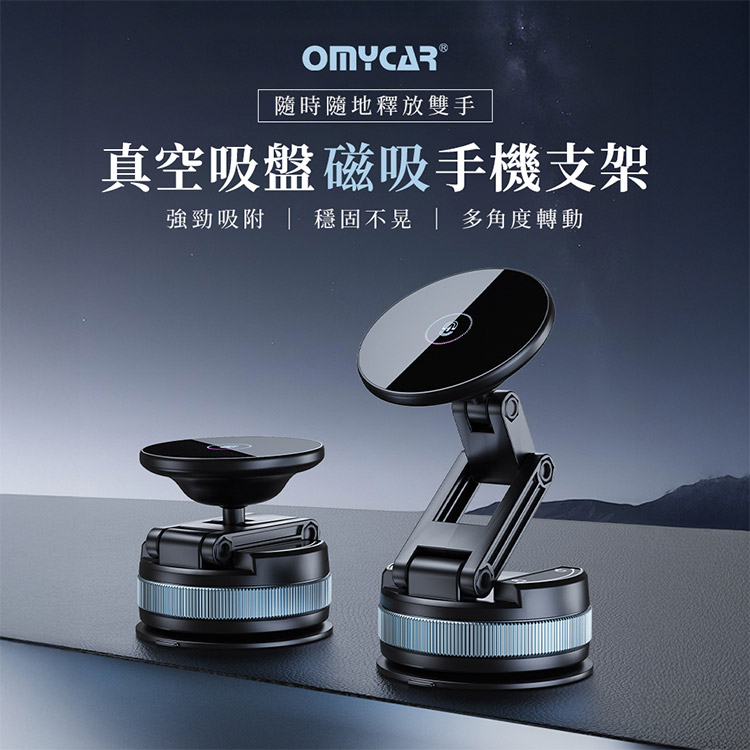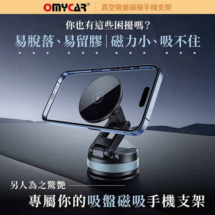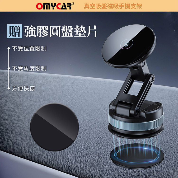 【OMyCar】真空吸盤磁吸手機支架 (360度旋轉 手機架 雙面吸附 汽車導航 免充電 迷你便攜)