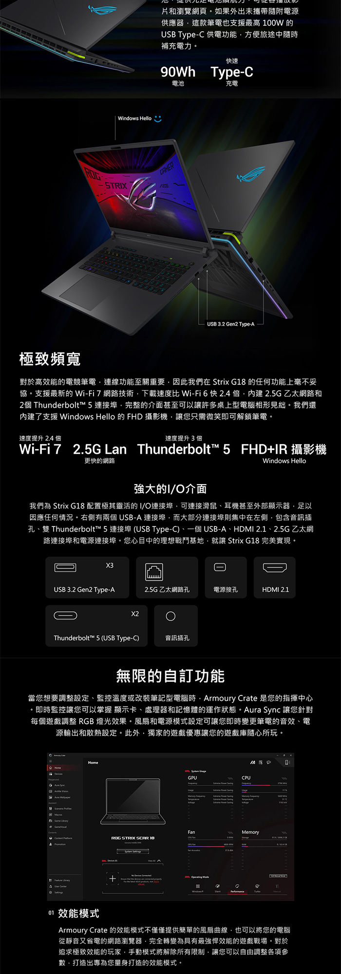 《ASUS 華碩》 G815JMR-0021G14900HX-NBL(18吋2.5K/i9-14900HX/16G/1TB SSD/RTX5060/Win11)