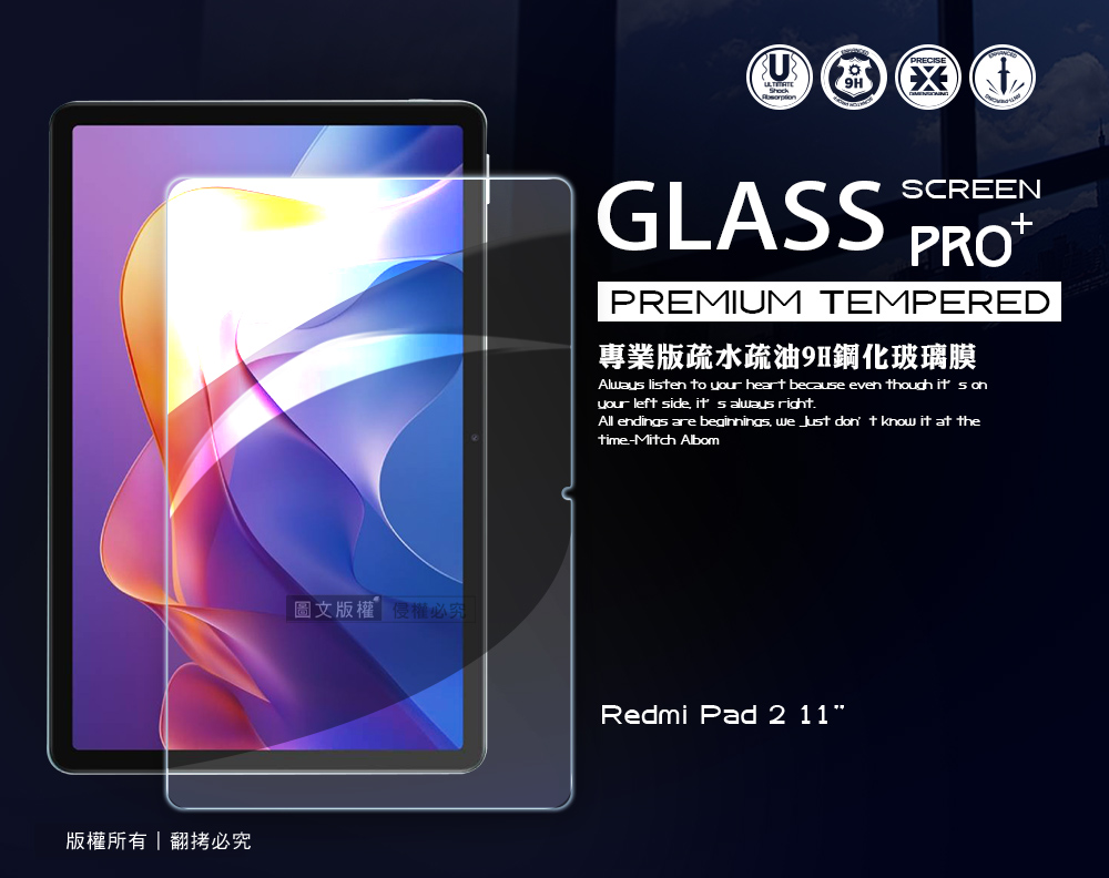 VXTRA 紅米Redmi Pad 2 經典皮紋三折皮套(科幻黑)+9H鋼化玻璃貼(合購價)