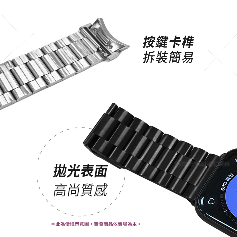 【Timo】SAMSUNG三星 Galaxy Watch 7 /6 /5 /4 通用款 按鍵式 不鏽鋼金屬替換錶帶(附調整器)-銀色