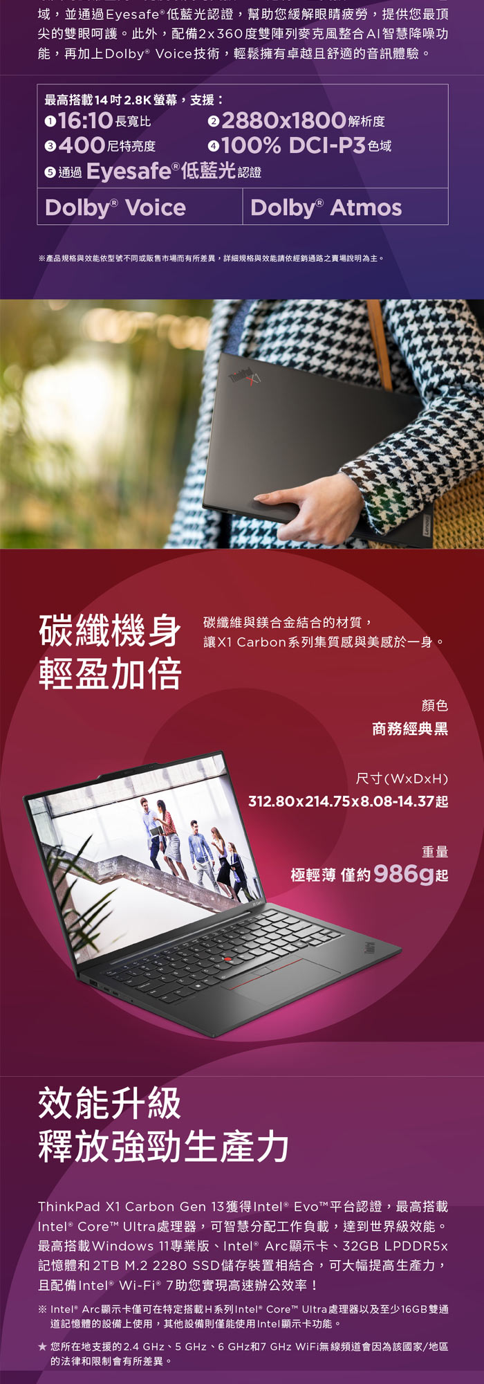 《Lenovo 聯想》ThinkPad X1 Carbon Gen 13(14吋WUXGA/Ultra 7 255H/32G/2TB SSD/特仕版)