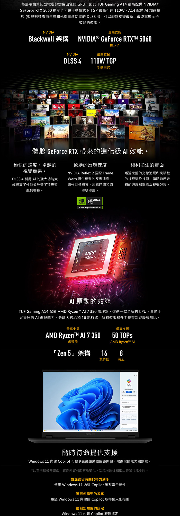 《ASUS 華碩》 FA401KM-0031C350H(14吋2.5K/Ryzen AI 7 350/32G/1TB+1TB SSD/RTX5060/特仕版