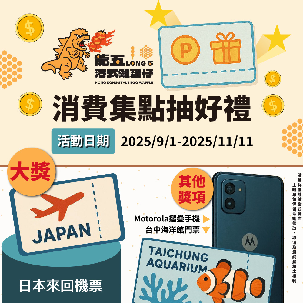 【龍五港式雞蛋仔】現金抵用券200元(多分店適用)(Mo)