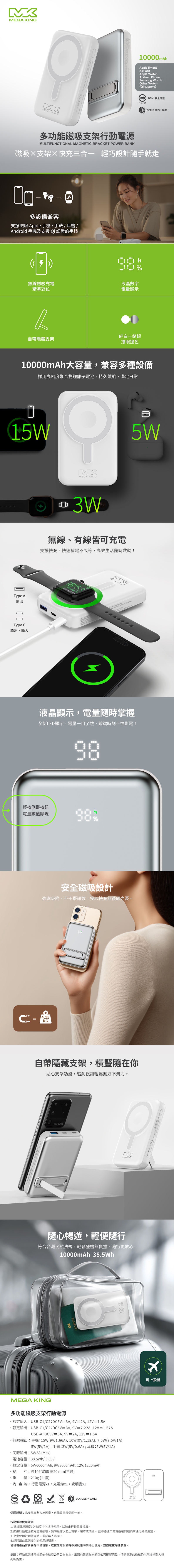 ★MEGA KING,行動電源,10000mAh,磁吸,MK