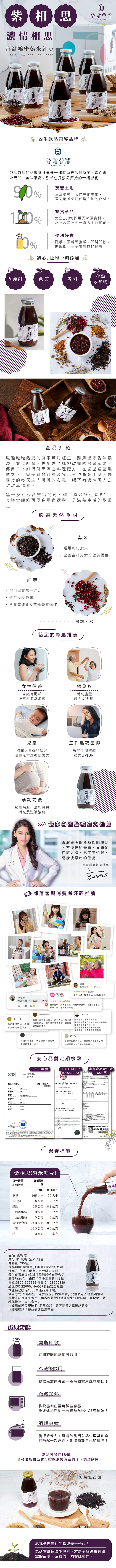 ※紫米紅豆經烹煮熟化稍微附著於瓶壁或產生沉澱係屬正常現象,請稍作攪拌,安心食用。