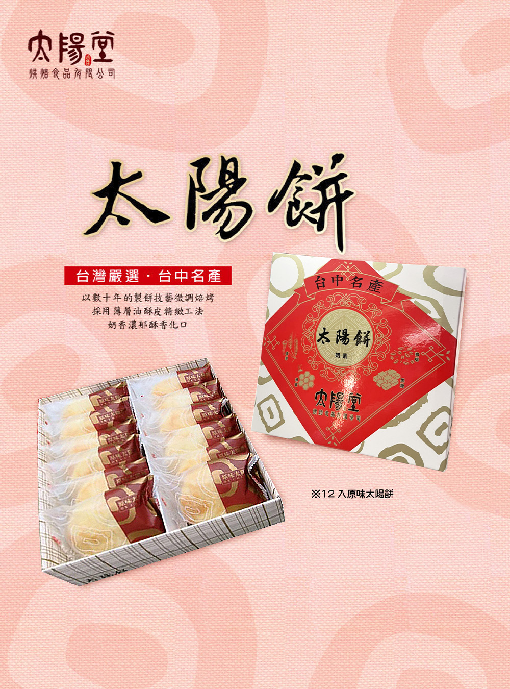 預購【太陽堂】經典太陽餅禮盒宅配組2入(奶素 12入/盒 附提袋)2026年節禮盒_2026/2/5~2/11出貨