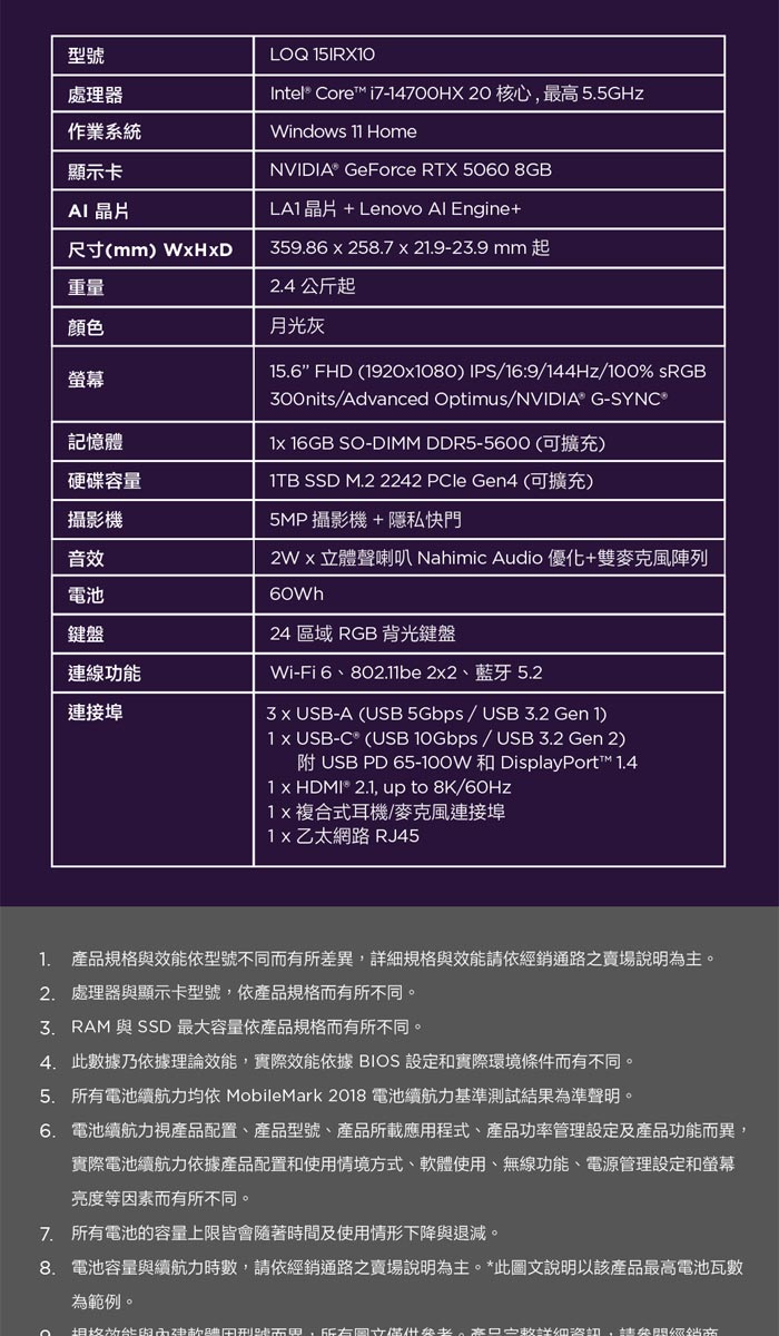 《Lenovo 聯想》LOQ 83JE00W6TW(15.6吋FHD/i7-14700HX/16G+16G/1TB+512G/RTX5060/特仕版)