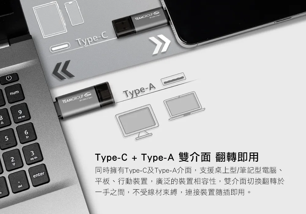 Type-C + Type-A雙介面 翻轉即用