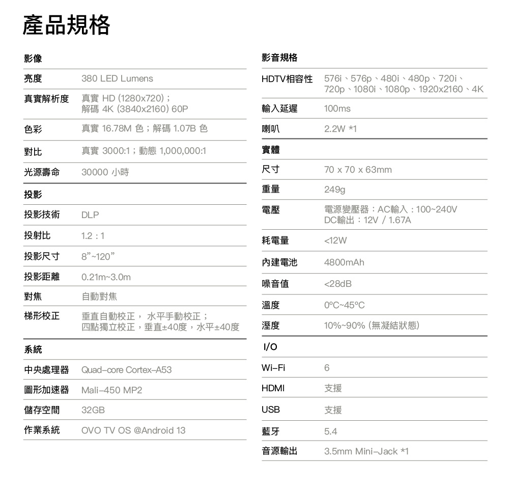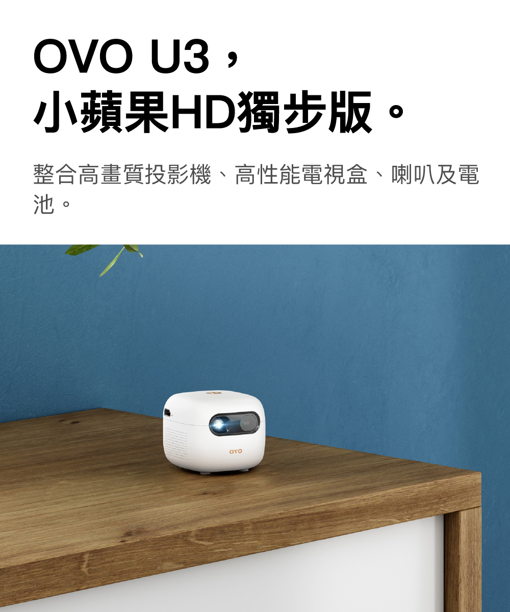 OVO 小蘋果HD獨步版行動智慧投影機 U3*送四季線上+Friday影視30天