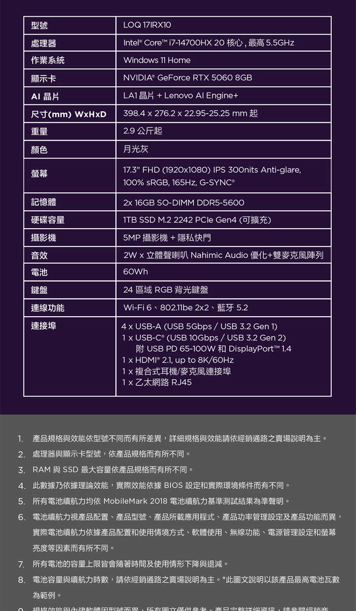 《Lenovo 聯想》LOQ 83JH0044TW(17.3吋FHD/i7-14700HX/32G+32G/1TB+1TB/RTX5060/特仕版)