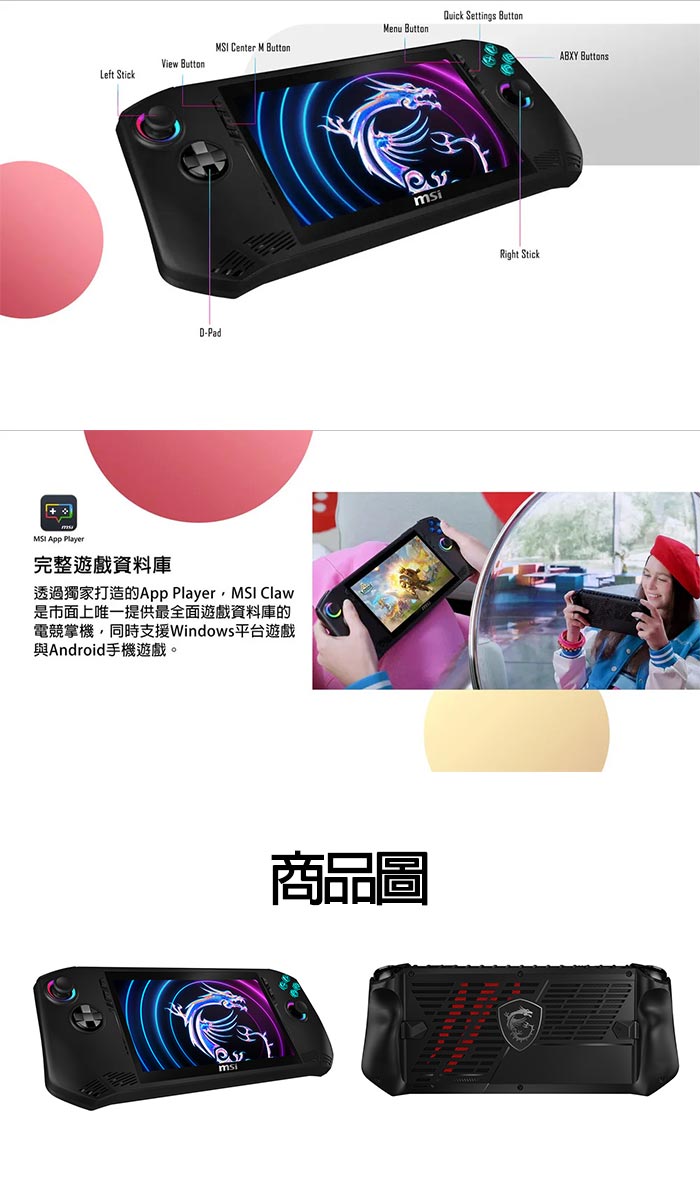 MSI Claw A1M-027TW 掌上型遊戲機 7吋/16G/512G