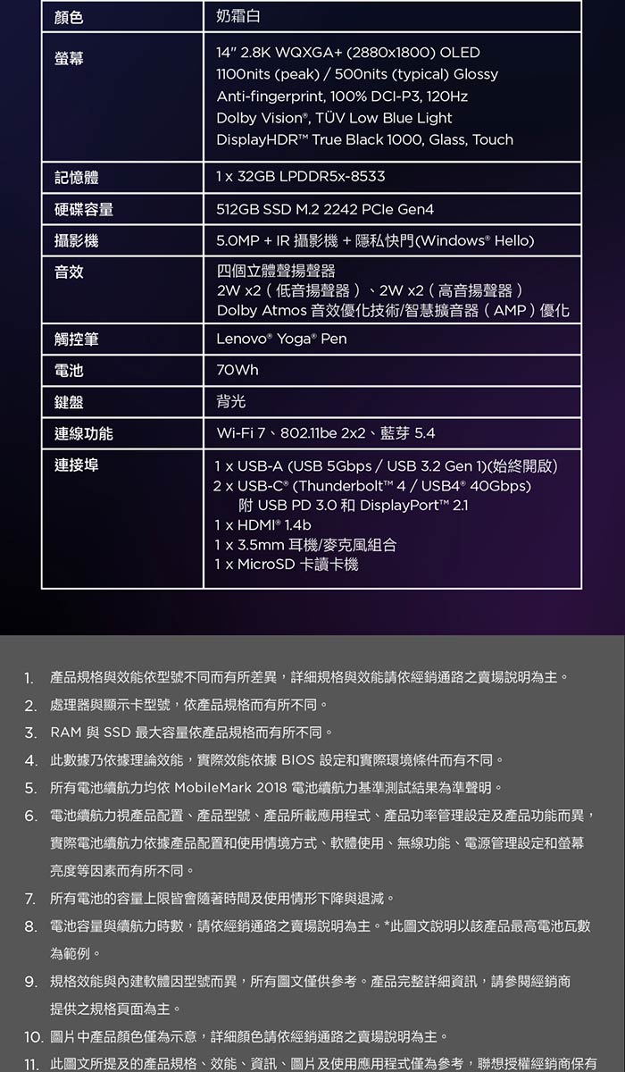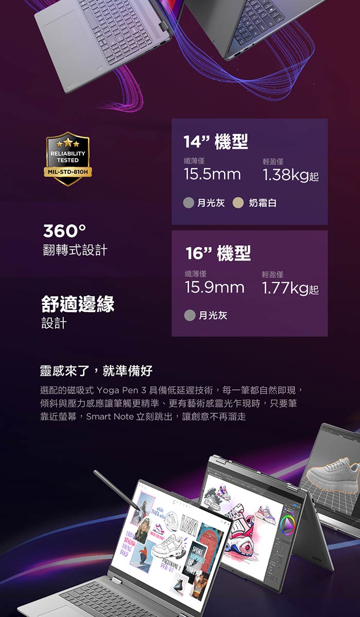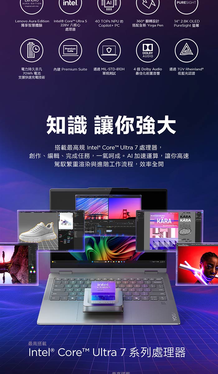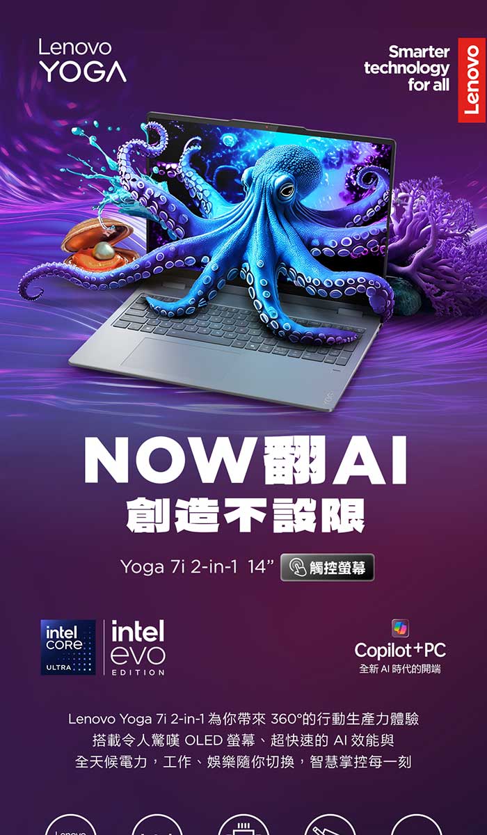 《Lenovo 聯想》Yoga 7 2-in-1 83JQ008PTW(14吋2.8K/Ultra 5 228V/32G/512G SSD/Win11/三年保)