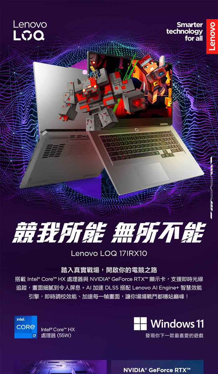 《Lenovo 聯想》LOQ 83JH0044TW(17.3吋FHD/i7-14700HX/16G+32G/1TB+1TB/RTX5060/特仕版)