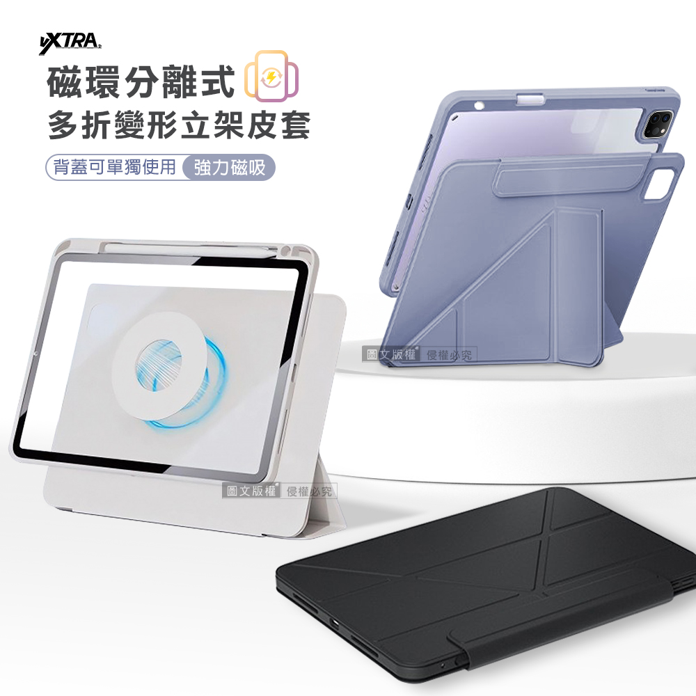 VXTRA 強力磁環分離式 iPad Air (第5代) Air5/Air4 10.9吋 多折變形立架皮套 含筆槽(沉靜黑)