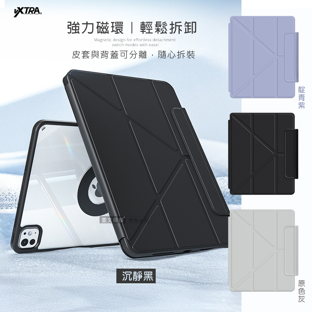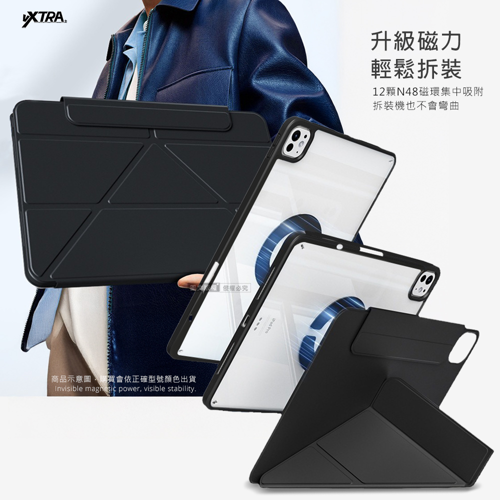 VXTRA 強力磁環分離式 2025/2024 iPad Air7/Air6 11吋 共用 多折變形立架皮套 含筆槽(沉靜黑)