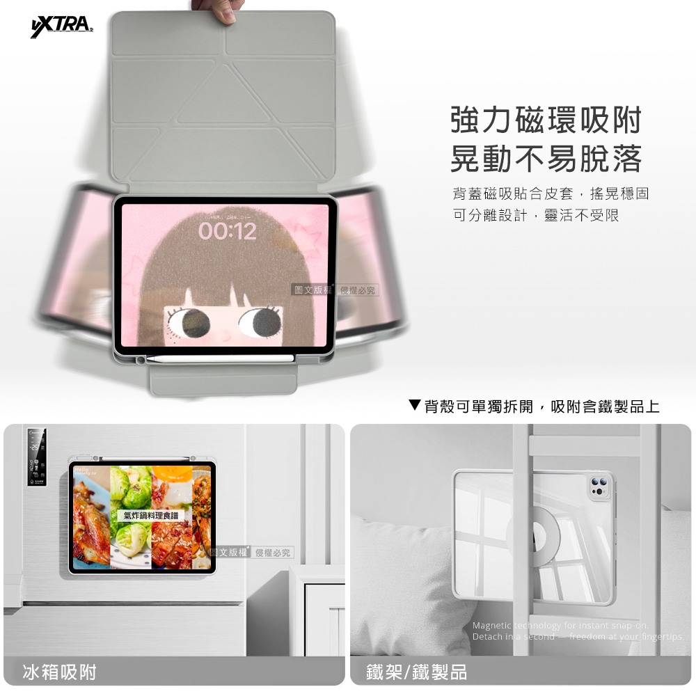VXTRA 強力磁環分離式 2025/2024 iPad Air7/Air6 11吋 共用 多折變形立架皮套 含筆槽(靛青紫)