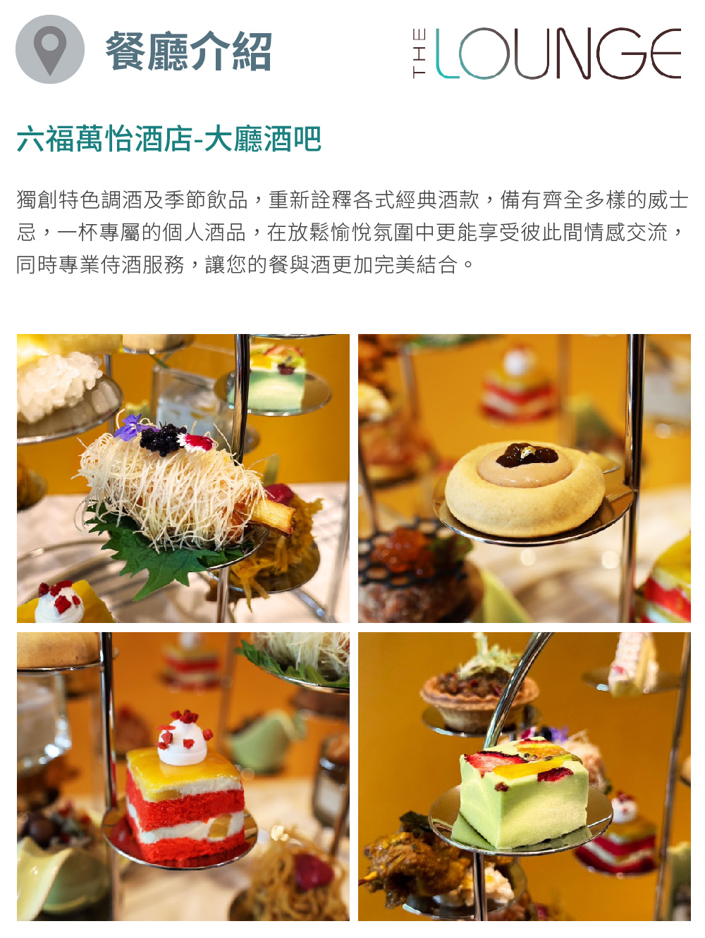 台北【六福萬怡酒店】大廳酒吧 平假日雙人 JC Cat鳥籠下午茶券(25Mo)