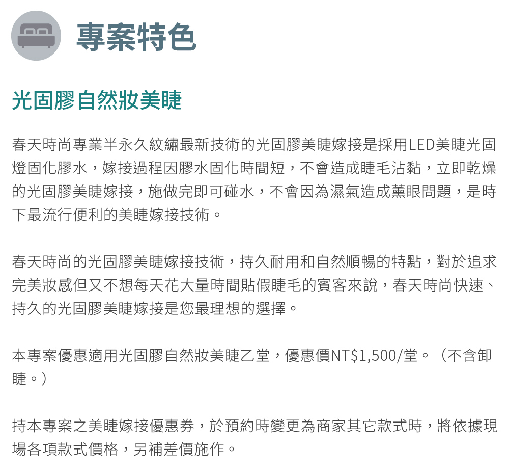 台北大安區【春天時尚】光固膠自然妝美睫NT$1,500乙堂優惠券(不含卸睫) (MO)