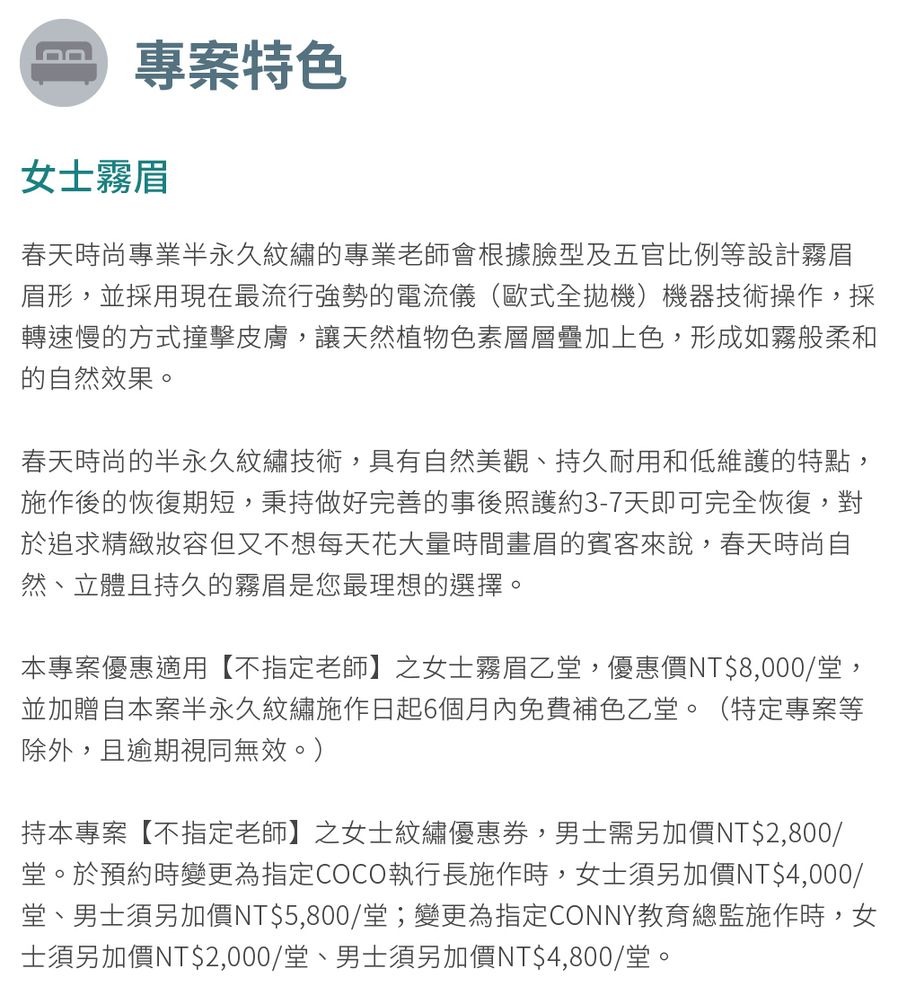 台北大安區 【春天時尚】女士霧眉【不指定老師】NT$8,000乙堂優惠券 (MO)