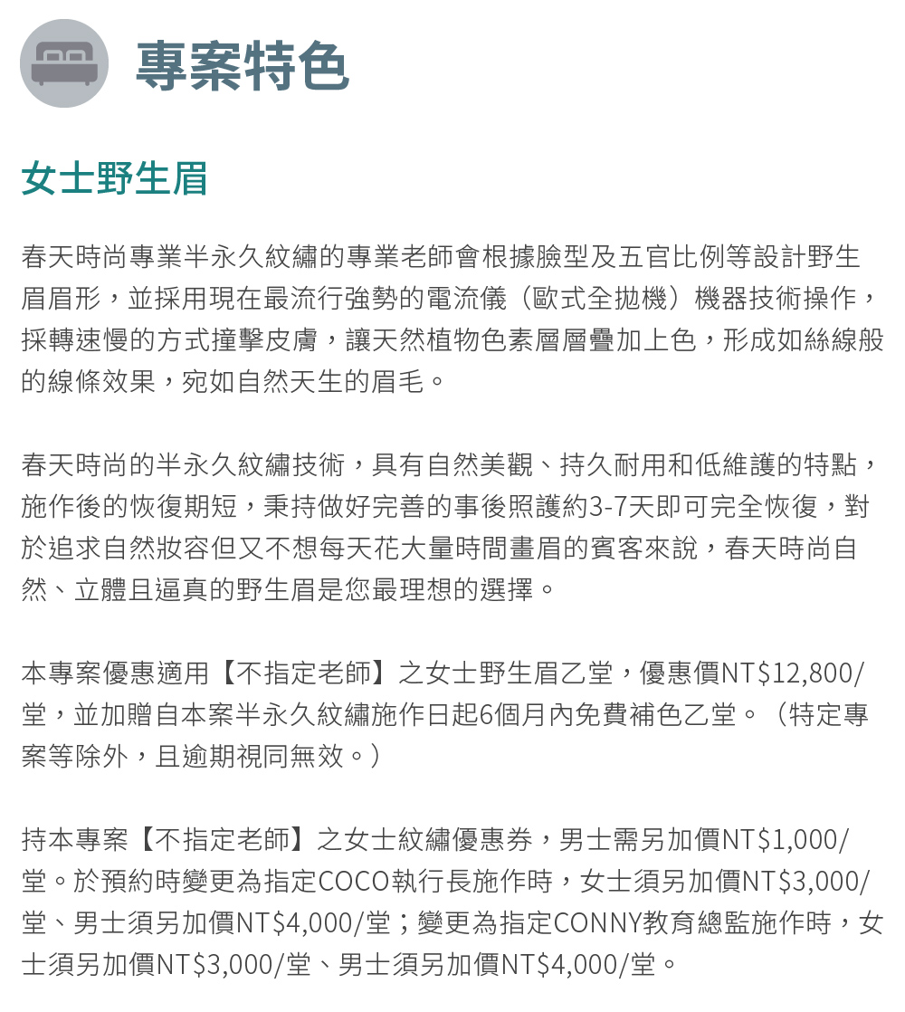 台北大安區【春天時尚】女士野生眉【不指定老師】NT$12,800乙堂優惠券(MO)