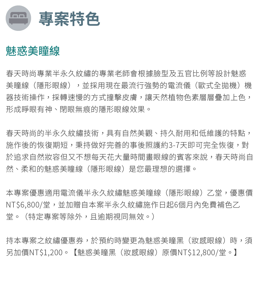 台北大安區【春天時尚】魅惑美瞳線(隱形眼線)NT$6,800乙堂優惠券(MO)