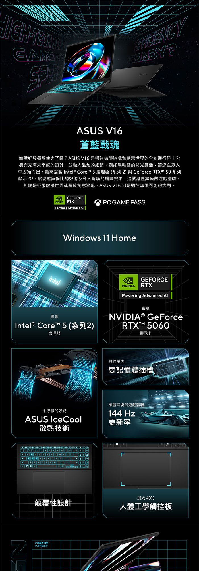 《ASUS 華碩》 V3607VP-0021K210H(16吋WUXGA/C5 210H/16G+8G/1TB SSD/RTX5070/Win11/特仕版)