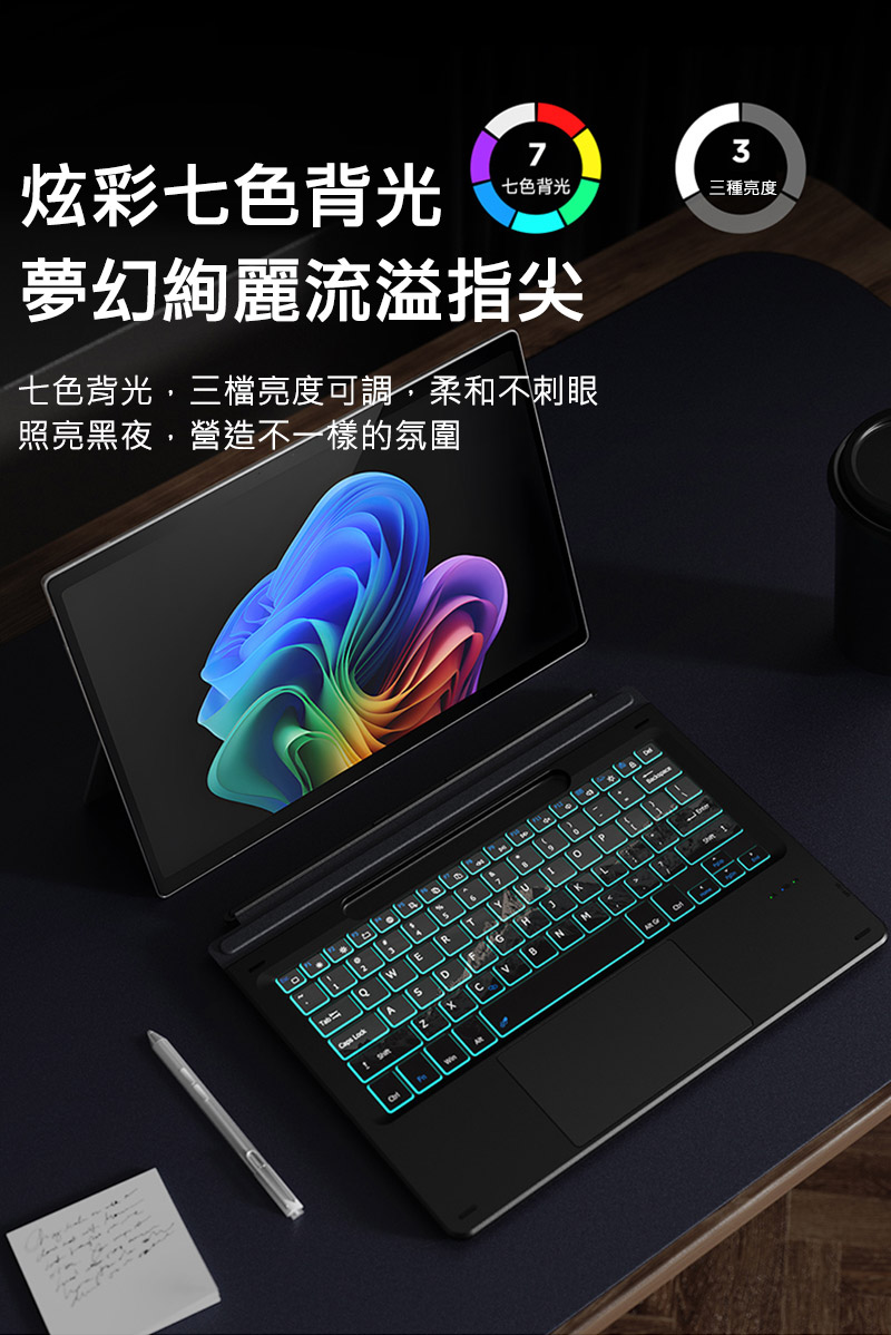 .七色背光,三階亮度可調,柔和不刺眼
