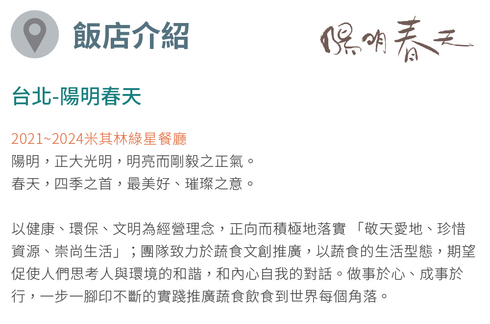 士林【陽明春天・心五藝文創園區米其林綠星餐廳】單人晚間菁典套餐-無菜單料理MO25