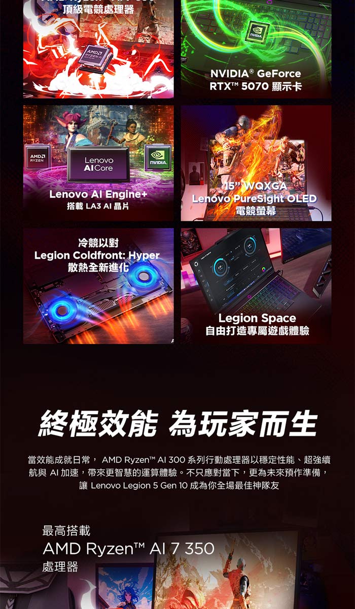 《Lenovo 聯想》Legion 5 83F1002STW(15.1吋WQXGA/R AI 7 350/16G+16G/1TB/RTX50708/特仕版)