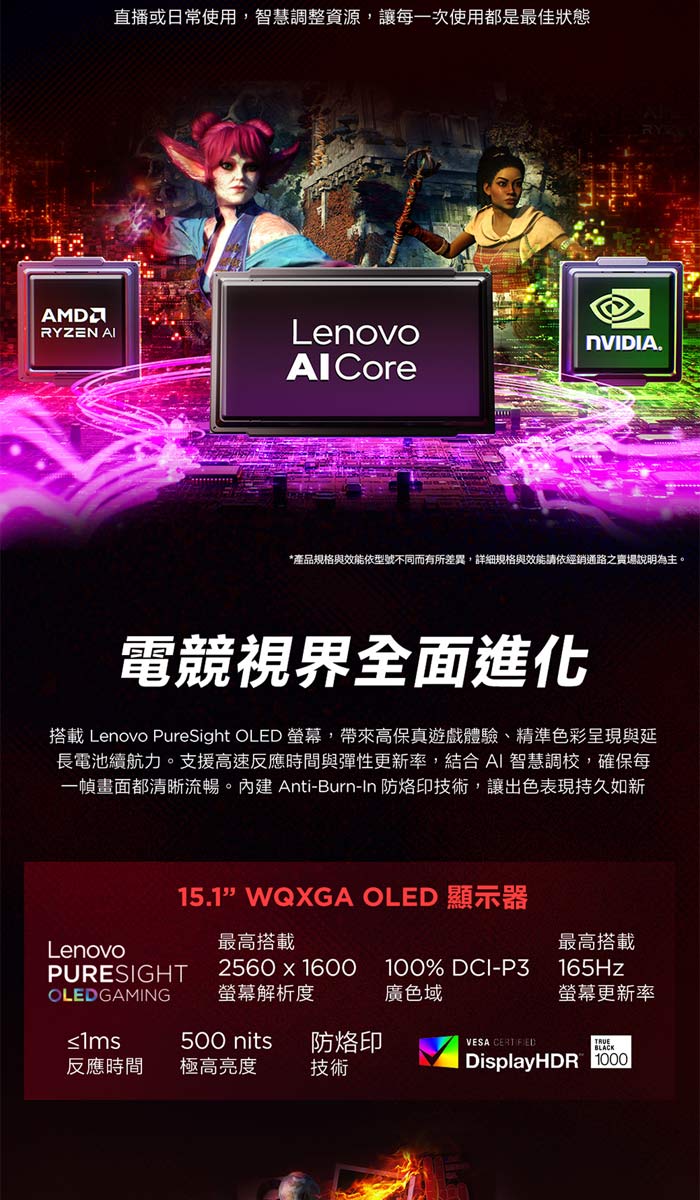 《Lenovo 聯想》Legion 5 83F1002STW(15.1吋/R AI 7 350/16G+16G/1TB+1TB/RTX50708/特仕版)