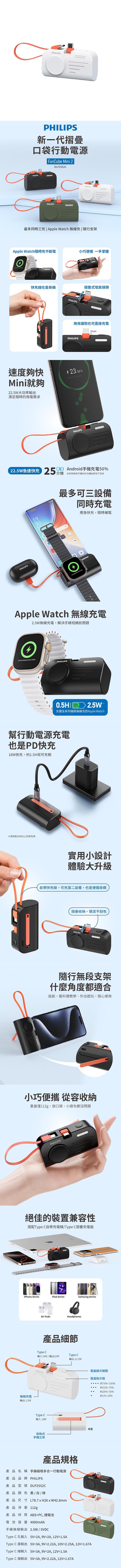 PHILIPS FunCube 手錶磁吸多合一行動電源(Type C款) DLP2552CW 白色