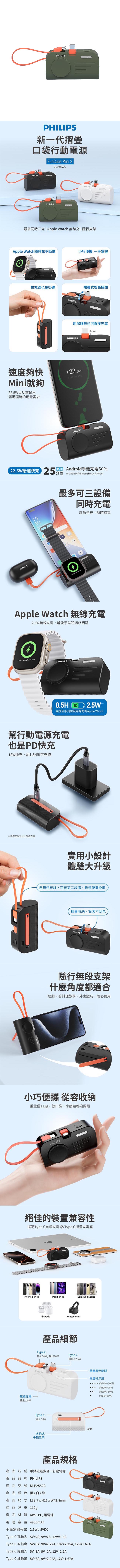 PHILIPS FunCube 手錶磁吸多合一行動電源(Type C款) DLP2552CG 綠色