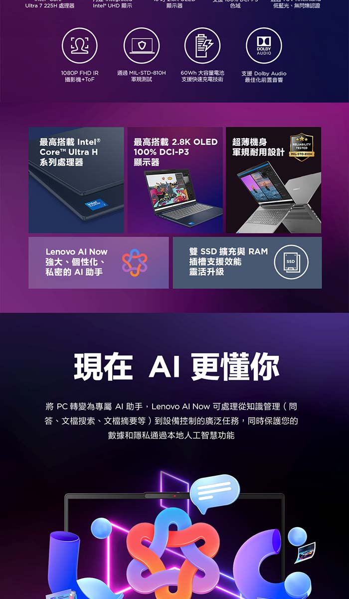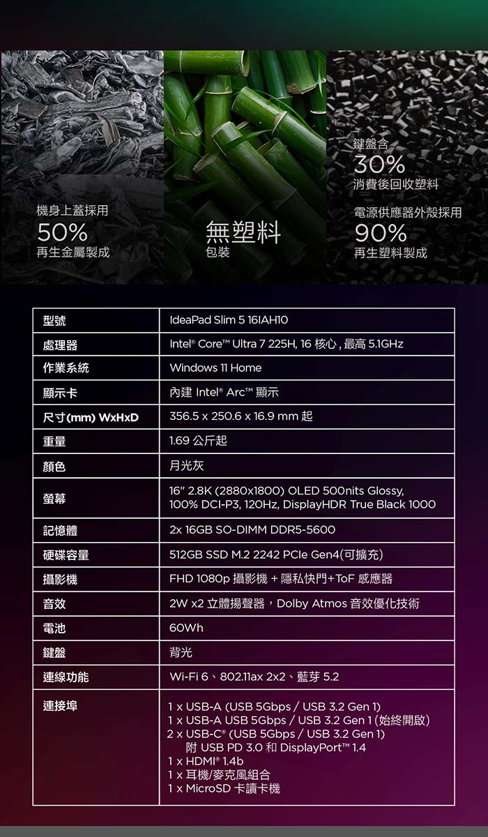 《Lenovo 聯想》IdeaPad Slim 5 83ND000JTW(16吋2.8K/Ultra 7 255H/32G/512G+1TB SSD/特仕版)