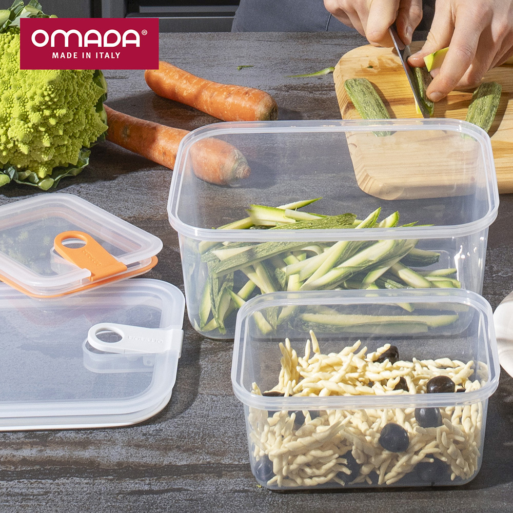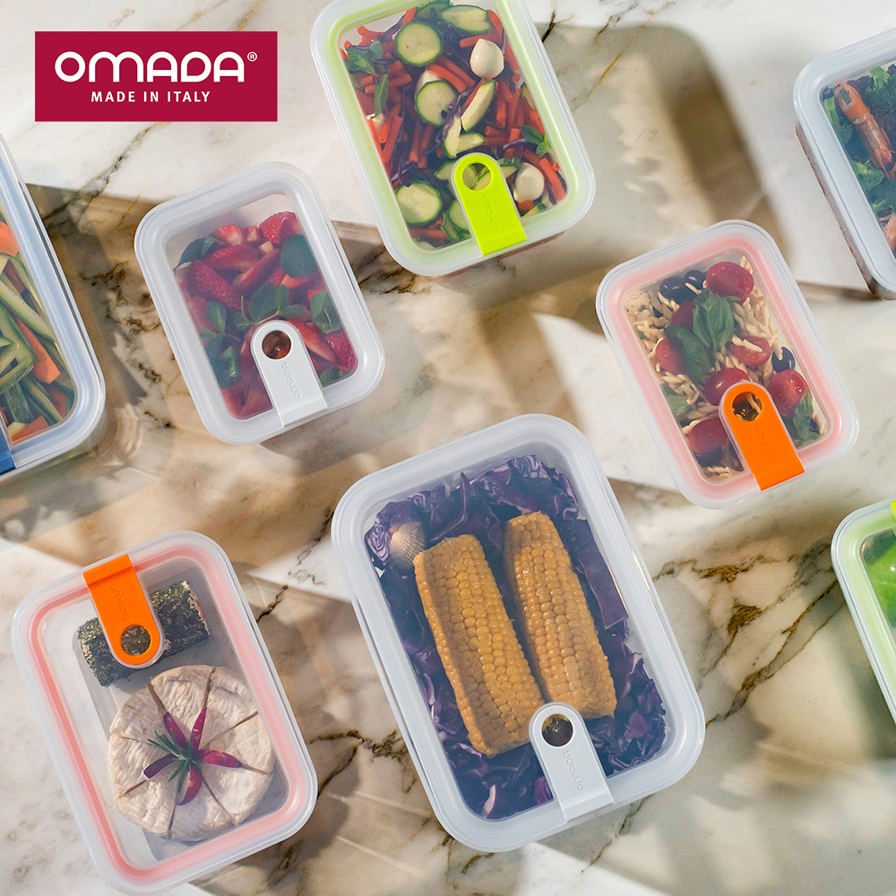 【OMADA】義大利製 主廚CHEF 易拉 保鮮盒0.75L+1.1L+1.5L+2.3L(小資四件組)隨機色