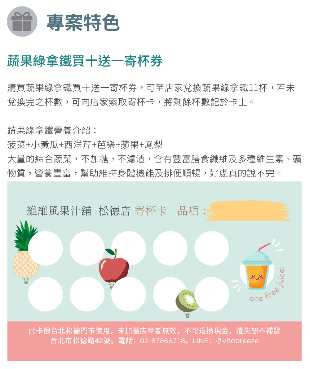台北信義區【維維風果汁舖】蔬果綠拿鐵買十送一寄杯券(MO)