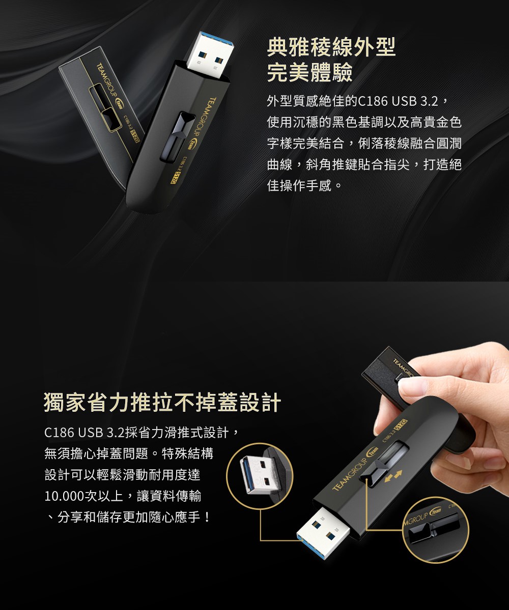 Team 十銓 C186 32GB 省力碟 USB3.2 隨身碟-黑