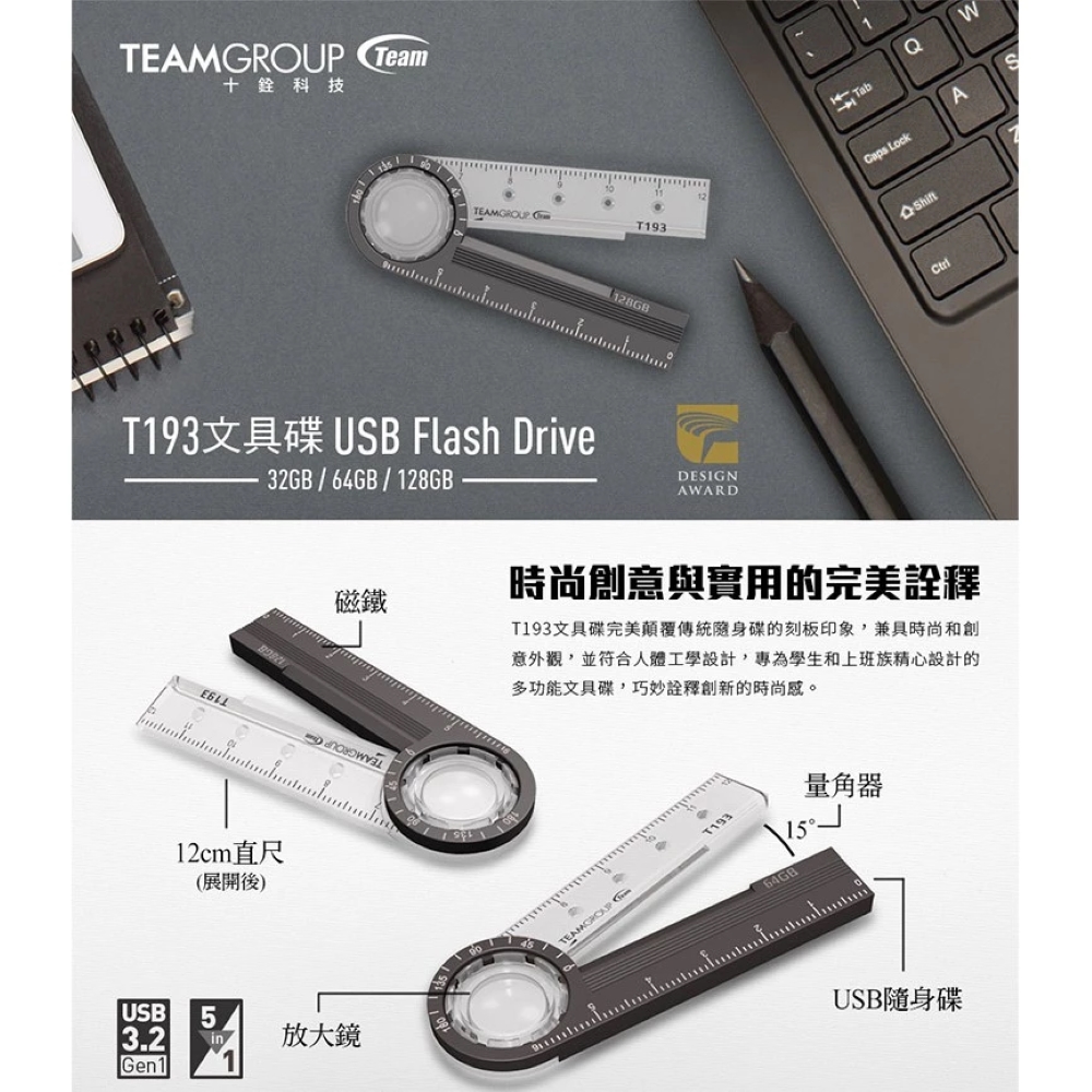 Team十銓科技 T193 64GB 文具碟 USB3.2 隨身碟