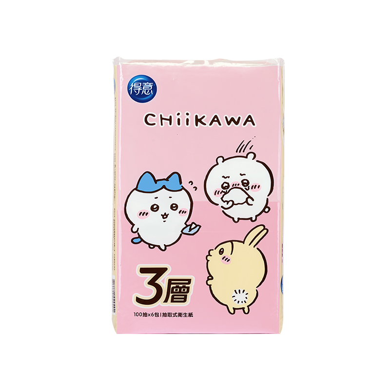 【得意】三層花紋衛生紙100抽x6包x12串/箱-吉伊卡哇款