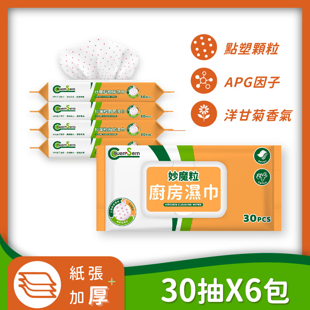 【Chuen Sern】妙魔粒廚房濕巾 6包/組 (去油汙 清潔黑科技 居家清潔)-限量贈淨魔力體驗包x10包
