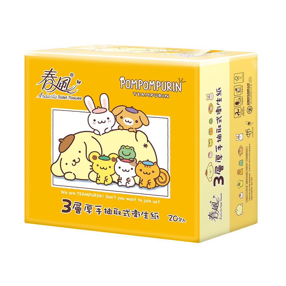 【春風】布丁狗3層厚手抽取式衛生紙90抽x20包x3串