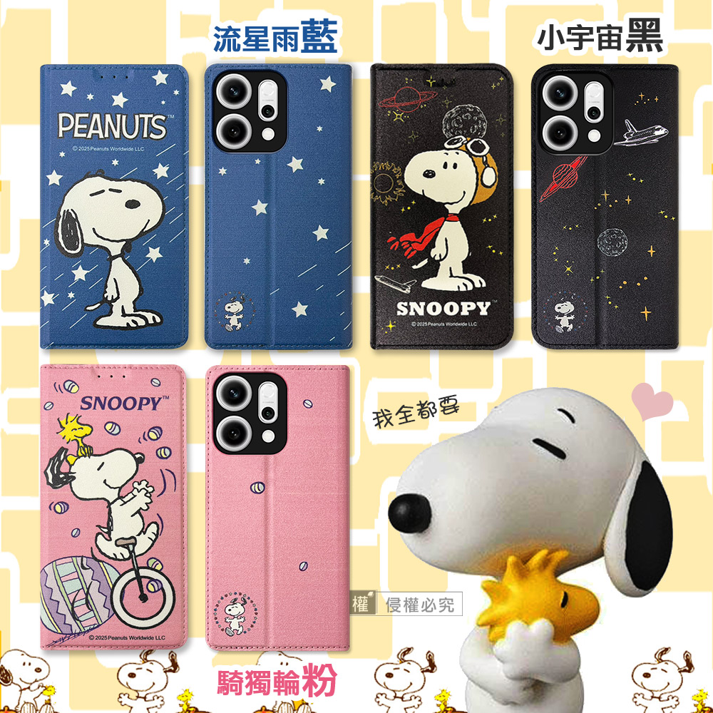 史努比授權正版 OPPO Reno14 F 金沙灘彩繪磁力手機皮套(騎獨輪粉)