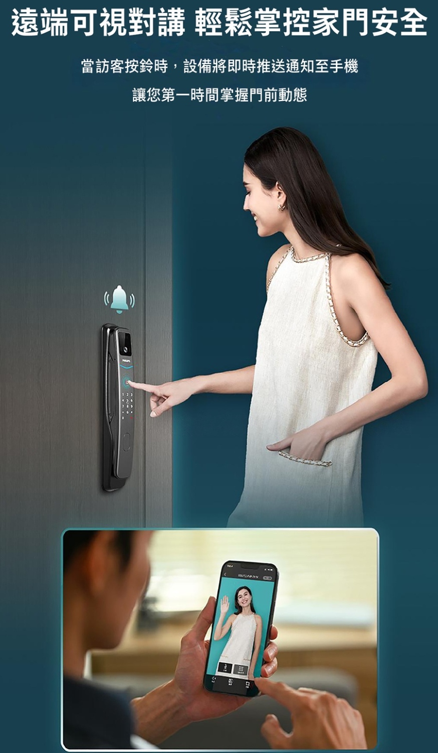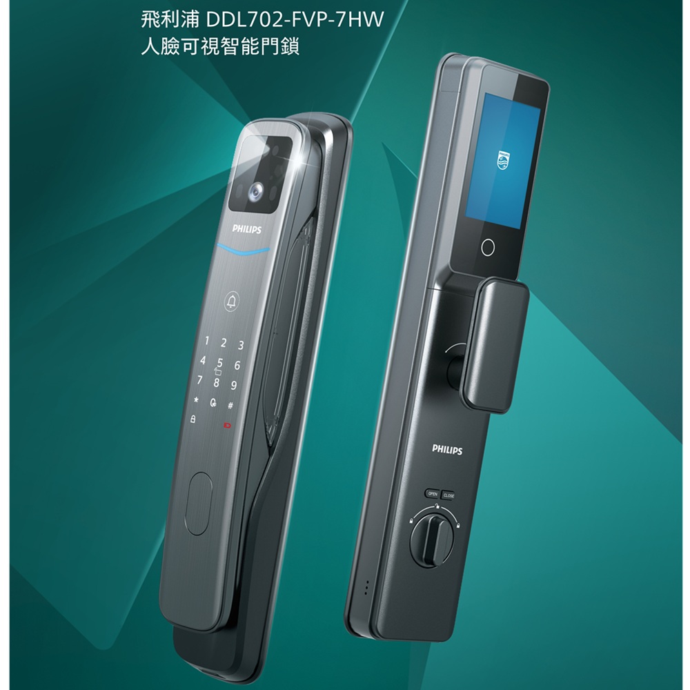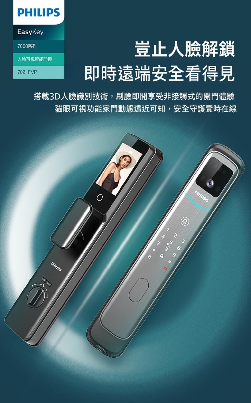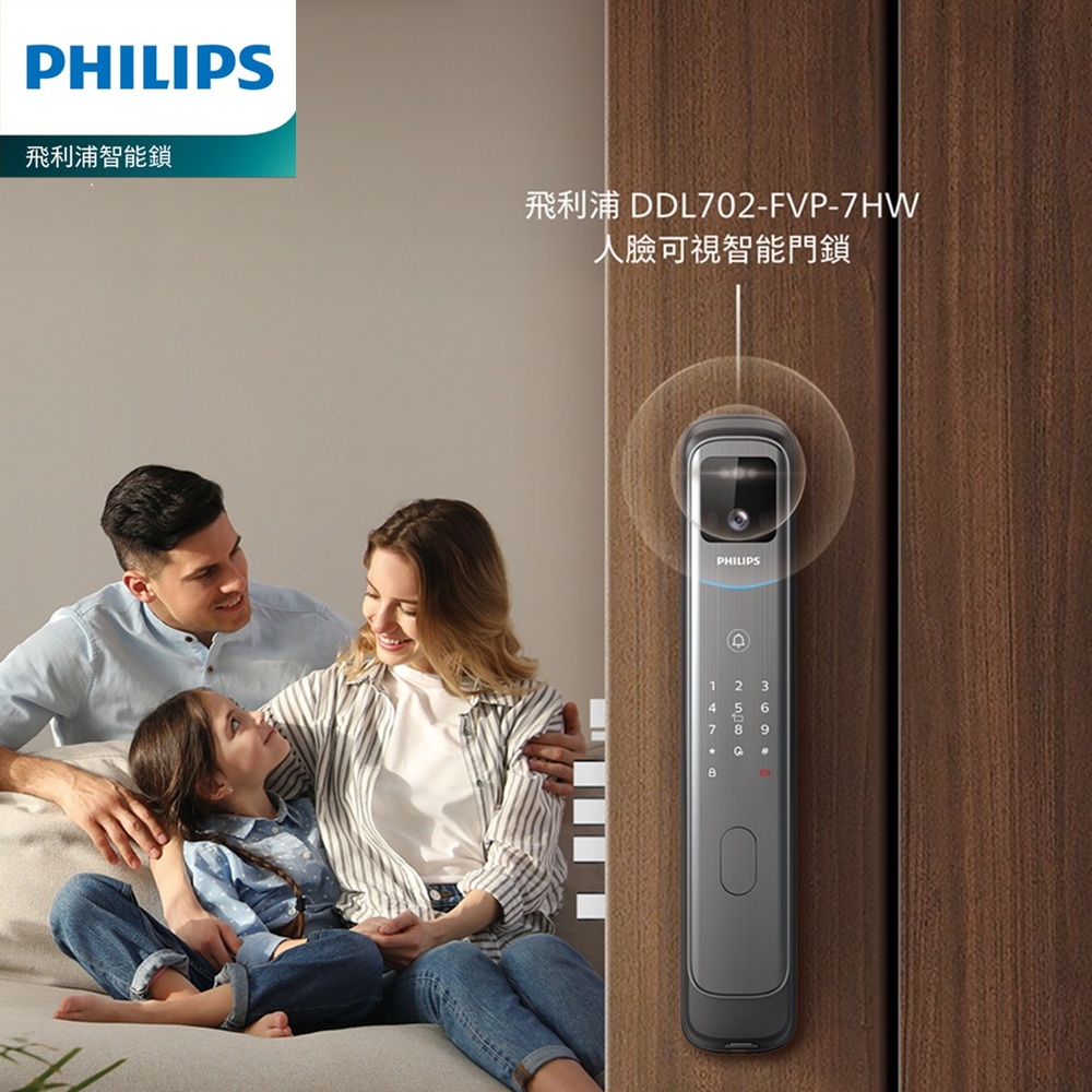 PHILIPS 飛利浦【智能鎖】702 FVP 人臉辨識/貓眼/聯網 智能門鎖 電子鎖(人臉│指紋│卡片│密碼│WiFi/含安裝)