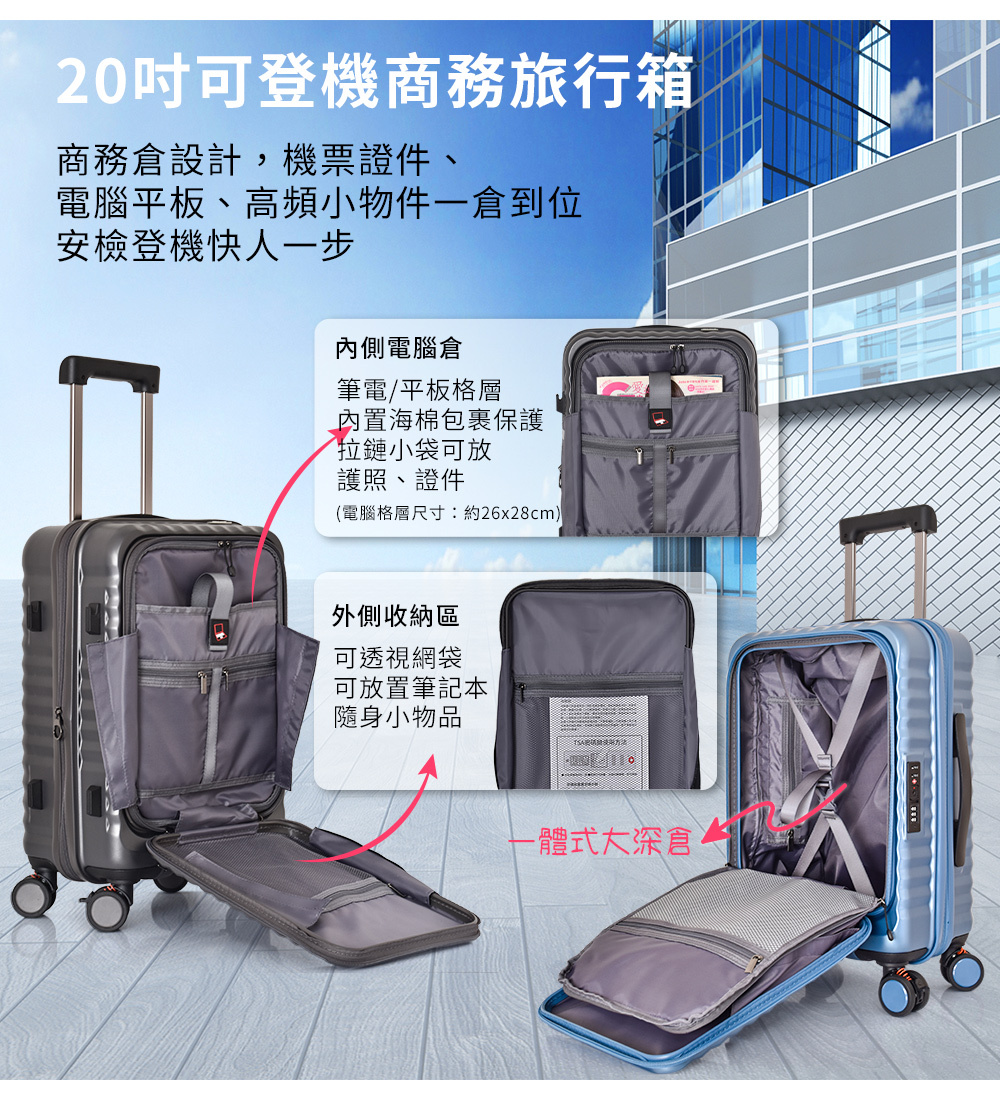 【中華VIP】Leadming 前進未來 20吋前開式29吋雙開蓋行李箱-冰鑽藍